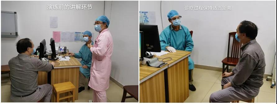 会议结束后,由院感科张副主任组织预检分诊人员、内科门诊医生、演员代表,开展一次诊间发现疑似病例后的应急演练,进一步提高预检分诊人员、临床医务人员对防控流程的熟悉程度,以便能快速有效地应对各项突发情况,保障复工后的正常诊疗活动。