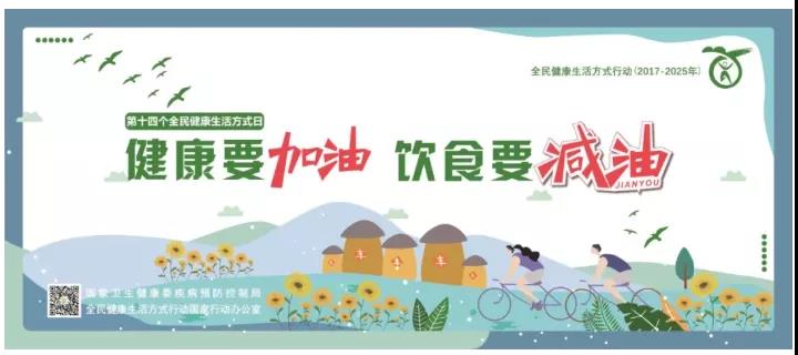 2020年9月1日是第14个“全民健康生活方式日”,为贯彻落实《健康中国行动(2019-2030年)》和《全民健康生活方式行动方案(2017-2025年)》有关要求,深入推进以“三减三健”为主题的全民健康生活方式行动,重点开展“减油”主题宣传,广泛倡导饮食减油理念,传播减油核心信息。