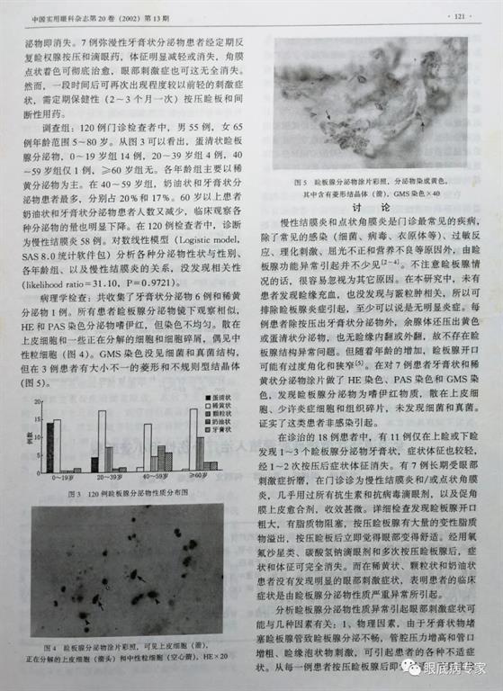 那时,我在图书馆查找,没查到国内有关睑板腺功能异常文章,就连专业书里也没有见到,但查到了大量国外文献里发表的GMD文章。因此,我决定在门诊观察一下到底有多少患者和正常人有GMD的表现。