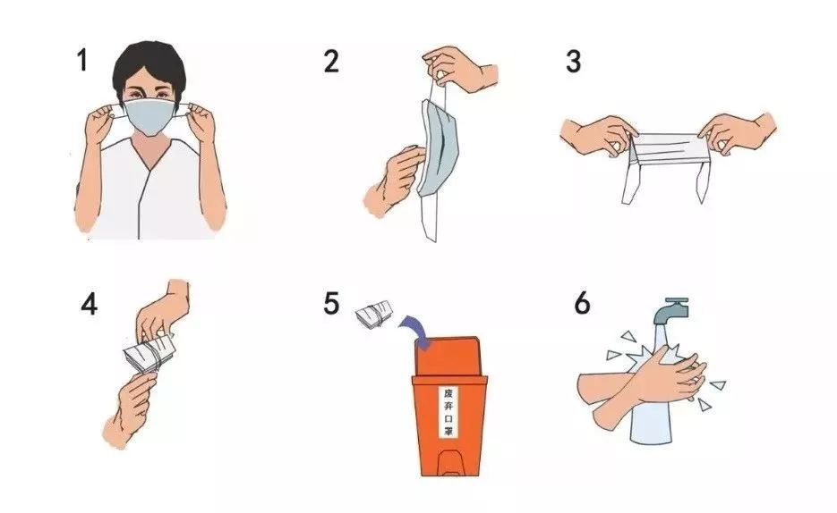 我们通过口罩阻挡了飞沫,如果用手直接从外摘下,相当于打开了接触传播的通道。