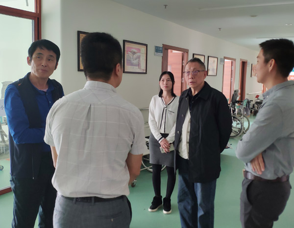 △住院楼康复科,左起:徐军主任记者、孙副院长、医保科温科长、刘陶社长、办公室李主任