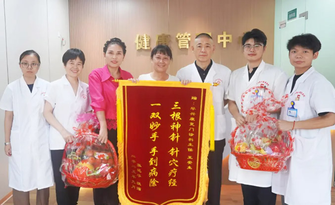 近日,我院门诊康复科王安生主任收到肩周炎患者赠送的锦旗与花篮:锦旗上书“三根神针 针穴疗经 一双妙手 手到病除”,字里行间满是患者对其精湛医术的感激之情。...