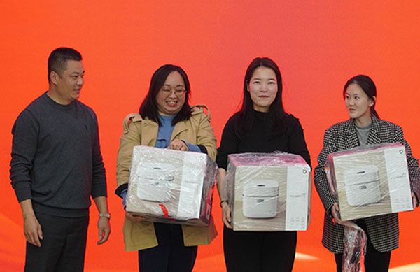 此后,幸运抽奖与才艺表演环节热烈展开。三等奖(体检套餐)、二等奖(小米电饭煲)、一等奖(小米空气净化机)及特等奖(小米iPad8)陆续揭晓,现场氛围喜庆活跃。